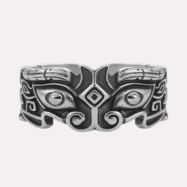 El Égida, legendario escudo de los dioses, se decía que portaba la mirada del propio poder: un símbolo de protección imposible de resistir. Este anillo captura esa esencia, con ojos penetrantes tallados en su robusta banda, velando por quien lo lleva con vigilancia inquebrantable.
