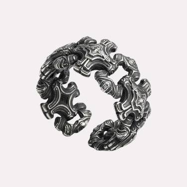 Adéntrate en la grandeza del Imperio Bizantino con este anillo meticulosamente elaborado, forjado en una aleación metálica de alta calidad. Su intrincado diseño entrelazado recuerda los ornamentados patrones del arte y la arquitectura sagrada bizantina, símbolo de fuerza, devoción y belleza atemporal.